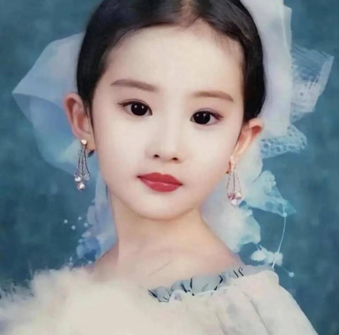 刘亦菲这个身穿白裙,头戴满天星的造型让人想起她小时候拍的这张艺术照,那时候她把白纱戴在头上,她等比例长大了,和小时候一样漂亮。她连眼睛的弧度都没有变,保养的太好了。