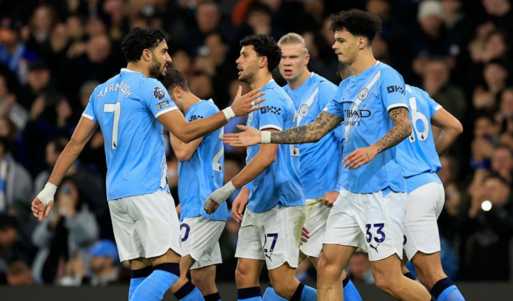 曼城排出了4132阵型。哈兰德和马尔穆什搭档双前锋。塞门约、伯纳多-席尔瓦和尼科-奥赖利的进攻组合联袂出击。罗德里单后腰。努内斯、鲁本-迪亚斯、格伊和努里4后卫首发出战。多纳鲁马担任首发门将。赖因德斯、谢尔基、福登和胡桑诺夫坐在替补席待命。